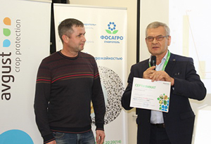 В заключение состоялась агровикторина с розыгрышем призов. Правильно ответившие на вопросы участники получили сертификаты на продукты или услуги компаний «Август» и «ФосАгро». Так, главный агроном СПК племзавода «Восток» Евгений Зубарев выиграл гербицидный комплект Бомба + Адью для применения на площади 100 га, а глава КФХ Александр Плотников – технологическое сопровождение и проведение демонстрационных испытаний в посевах озимой пшеницы на площади 15 га. На вопросы «ФосАгро-Ставрополь» смогли правильно ответить лишь два участника. Одному из них организаторы вручили сертификат на почвенную диагностику на площади 50 га, а его коллега получил полновесную тонну комплексного удобрения с серой NPK(S) 15:15:15(10), которое пригодится ему уже этой весной.