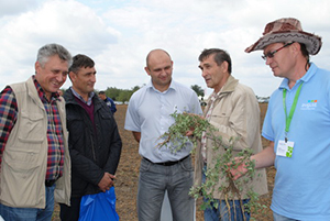 А здесь все растет: из бобовых – нут, донник, эспарцет, люцерна, а также подсолнечник, пшеница. Прекрасно себя чувствует в наших условиях сорго зерновое, а у него стержневой корень, как и у нута. По нуту, правда, пока еще с защитой не определились, хотя А. Ю. Шуркин предлагает против двудольных использовать до посева Торнадо 500, а граминицид Миура – против злаковых по вегетации. Самое главное, что мы во взаимодействии и находим пути решения, так что результат, я думаю, будет.