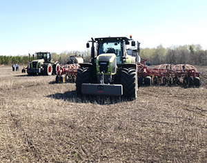 В это время в хозяйстве шла посевная, на полях работали восемь энергонасыщенных тракторов с посевными агрегатами, шесть из них сеяли ячмень и горох, и еще два – подсолнечник. Кроме того, на нескольких полях вносили безводный аммиак с заделкой в почву. Гости с интересом ознакомились с ходом сева. В хозяйстве работают по системе No-till, для прямого посева приобретены посевные комплексы «Борго». Министра очень удивила и заинтересовала применяемая в хозяйстве «Августа» технология, а также завезенные элитные семена пшеницы, ячменя, подсолнечника и относительно новых для республики культур – ярового рапса и масличного льна.