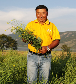 А на фото – региональный представитель ТОО «Август-Казахстан» в Кокшетау Нургали Канитаев на рапсовом поле партнерского хозяйства.